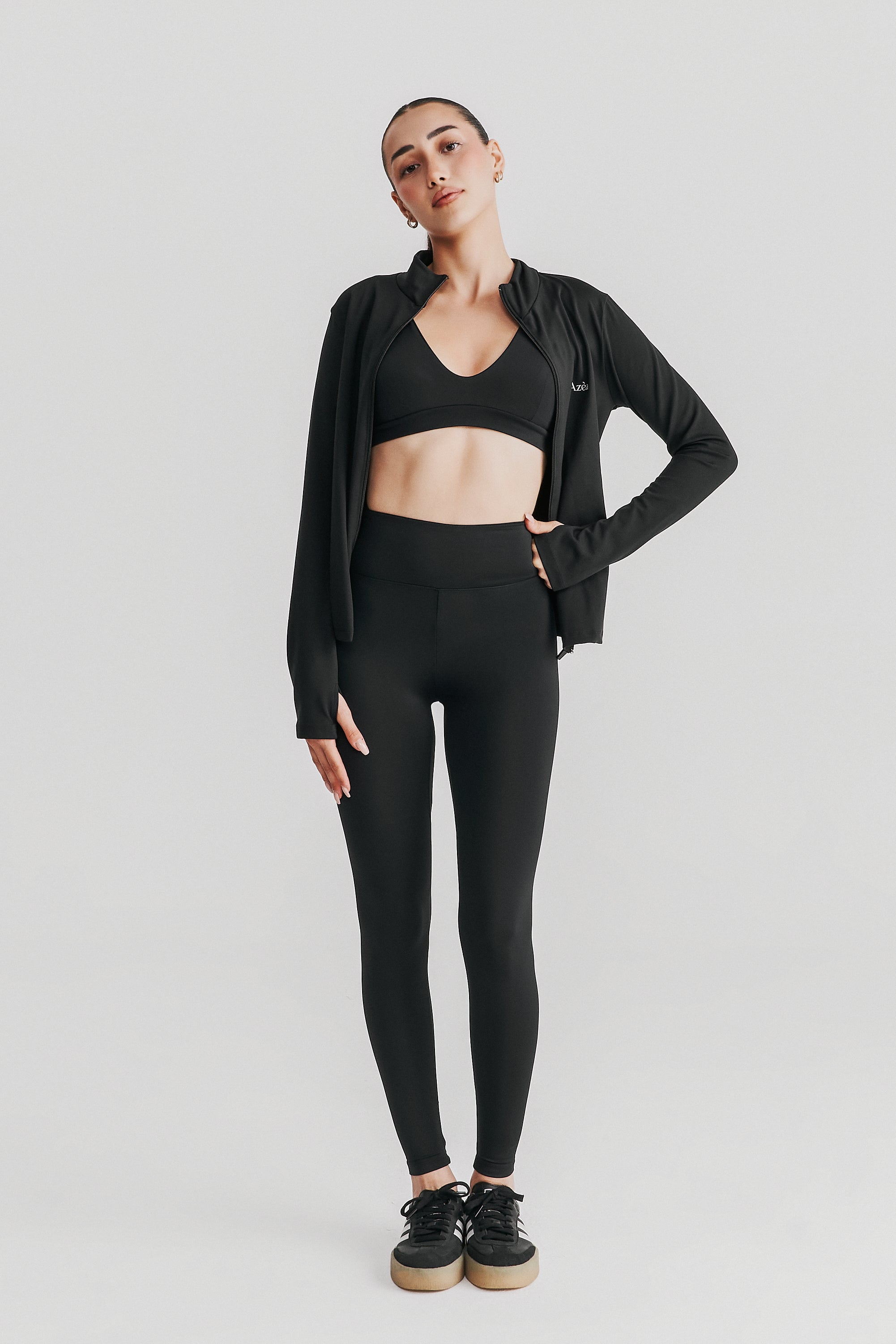 Siyah Tayt & Siyah Bra & Siyah Ceket